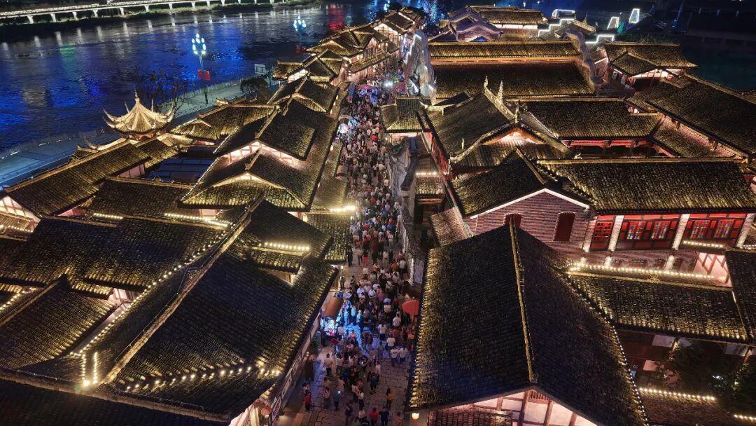 国庆中秋假期的李庄古镇夜景。(翠旅投公司供图)